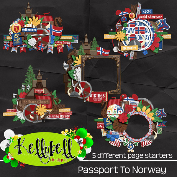 Are you ready for another installment of Kelly's Passport Series? This week we are going to the beautiful glacial mountains and deep coastal fjords of Norway. This collection is a must have for your Epcot Norway Pavilion pictures of trolls, princesses and vikings. It's also great for Disney Norwegian cruises or international travel. Make sure you get the coordinating Page Starters, Journal Cards, Word Art, Word Flair, and Quick Pages.